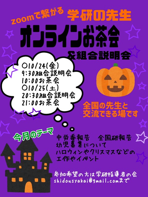 ○お茶会:全国研報告 中労委報告 幼児募集 ハロウィンやクリスマスイベントなど